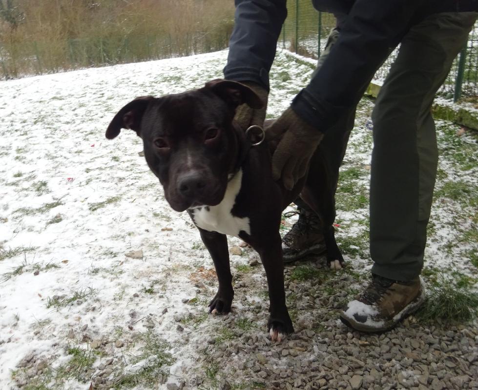 Shadow est un gentil Amstaff attachant qui a besoin d'amour. IL adore les promenades mais surtout les caresses et un bon panier au chaud.
